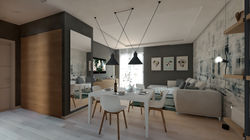 Studio di interni per ristrutturazione della zona giorno di un appartamento con stile moderno che strizza l'occhio al vintage, come da richiesta della committenza.